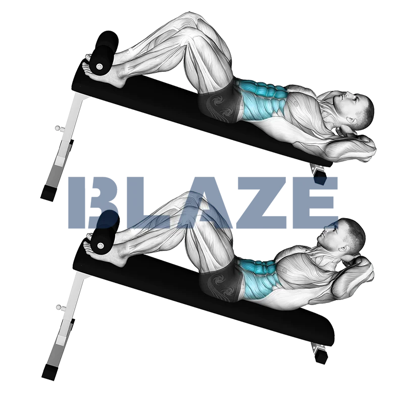 Progression lente : Si tu débutes avec les crunchs déclinés, commence par un angle de déclin plus doux pour éviter une tension excessive. Augmente progressivement l'angle au fur et à mesure que ta force et ta technique s'améliorent.