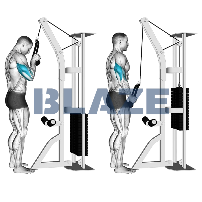 L'Exercice de poussée triceps avec cordes est un exercice puissant pour améliorer la force des bras supérieurs. Ce mouvement cible principalement le triceps brachial, engageant les trois têtes pour un développement équilibré. Les muscles secondaires comprennent les épaules et le tronc, fournissant une stabilisation. Les athlètes bénéficient de cet exercice en améliorant la force et la définition des bras, ce qui aide à la performance dans les sports nécessitant des mouvements puissants des bras comme le basketball, le tennis et la natation. Une force accrue des triceps contribue également à de meilleures performances dans les entraînements de la poitrine et des épaules, offrant un conditionnement complet du haut du corps.