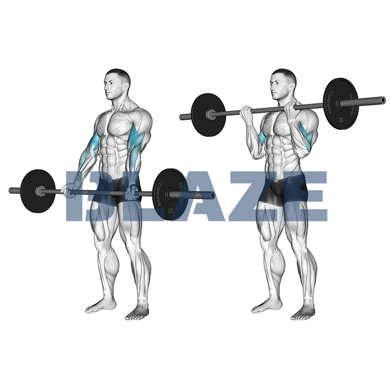 - 6Expire en étendant les coudes et ramène la barre EZ à la position de départ.