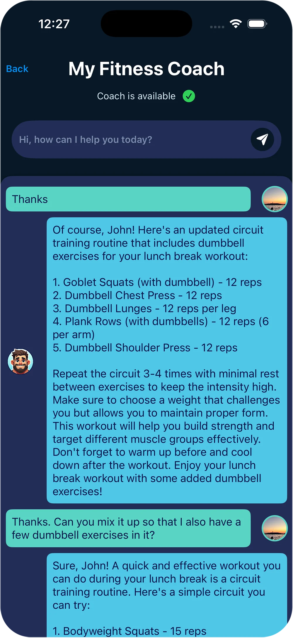 Wirtualny trener, który jest zawsze dostępny, by odpowiedzieć na pytania, zapewnić motywację i oferować fachowe porady na temat fitnessu i zdrowia.