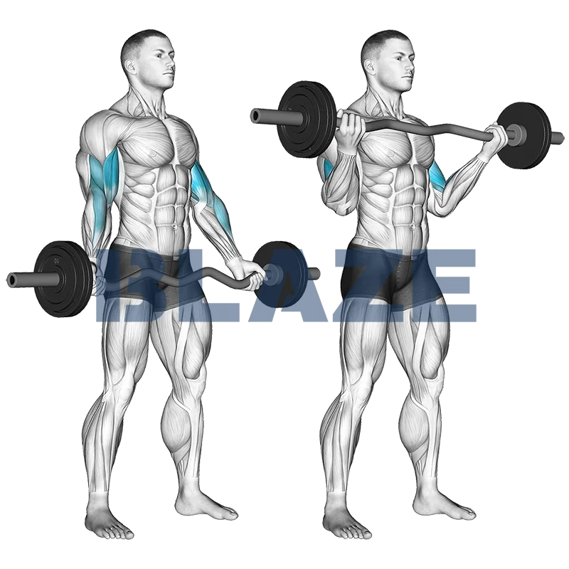 Aderência e Alinhamento dos Punhos: Utilize as alças largas e externas da barra EZ para pegar a barra com uma pegada ampla. A pegada semi-supinada (ângulo da palma voltada a partir da barra EZ) pode ajudar a reduzir a tensão nos seus punhos.