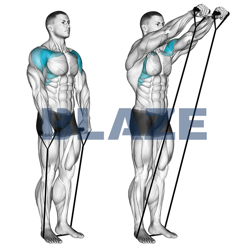 Amplitude de Movimento: Levanta a faixa até que os braços fiquem paralelos ao chão. Passar desse ponto pode colocar estresse excessivo nas articulações dos ombros.
