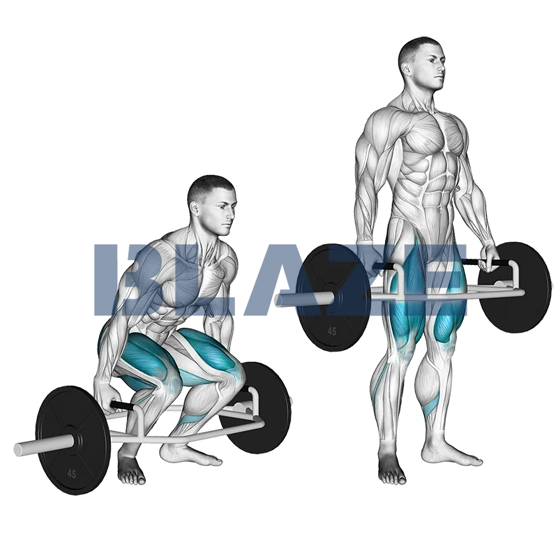 - 2Abaixa em agachamento e agarra firmemente as alças da barra trap.