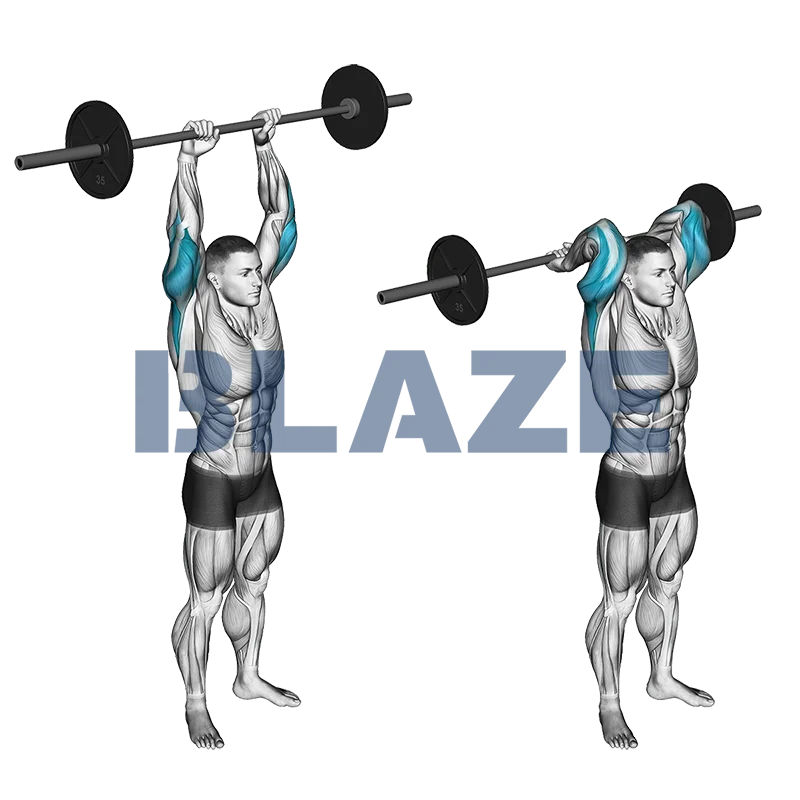 A Extensão de tríceps com barra (em pé) é um exercício poderoso que foca no tríceps braquial, especificamente na cabeça longa. Este movimento também envolve os ombros, antebraços e core para estabilização. Os atletas se beneficiam desse exercício ao melhorar a força do braço superior, aumentar a definição muscular e elevar a resistência geral do braço. Eficaz para esportes que exigem movimentos de braço potentes, ele aumenta o desempenho em atividades como basquete, natação e tênis. Além disso, ajuda a alcançar um desenvolvimento equilibrado dos músculos da parte superior do corpo.